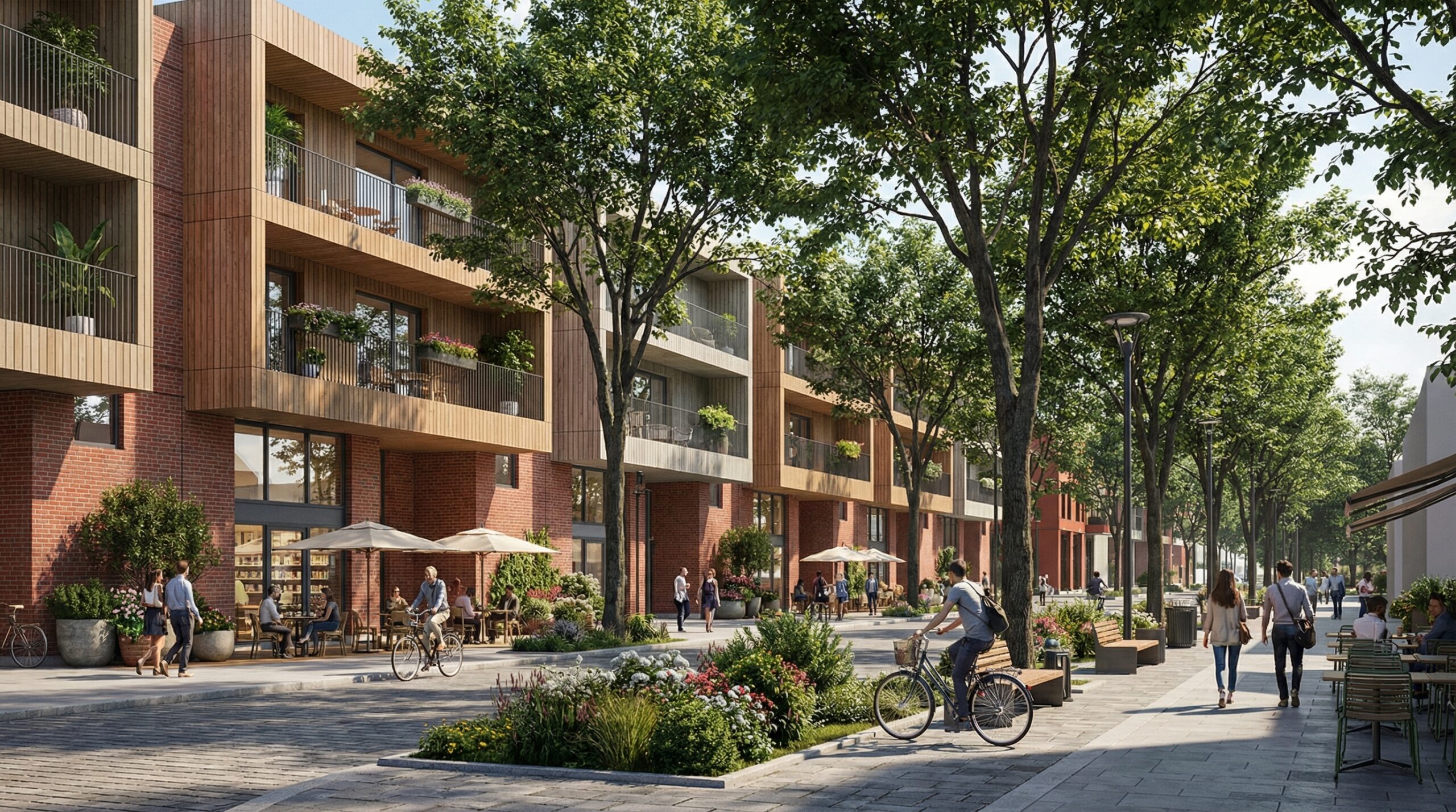 Kvartalo architektūra paremta formų ir medžiagų įvairove, kuri kuria identitetą ir išvengia monotonijos.